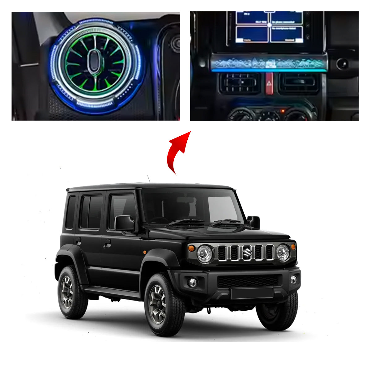 Stylish and Modern: The ambient lights for Jimny beautify the interiors with high-quality ambience. The sleek fittings and soft colors enhance the style of the interiors.