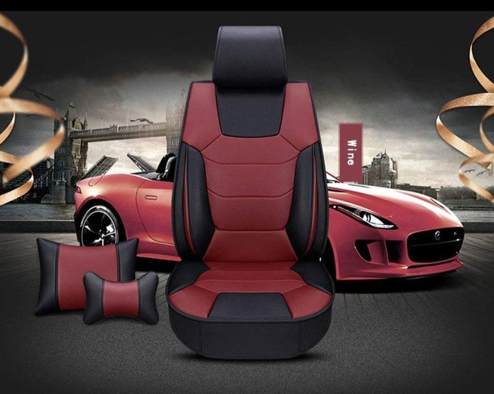 KVD Superior Leather Luxury Car Seat Cover For Tata Curvv Black + Wine Red Free Pillows And Neckrest Set (With 5 Year Onsite Warranty) - D140/77