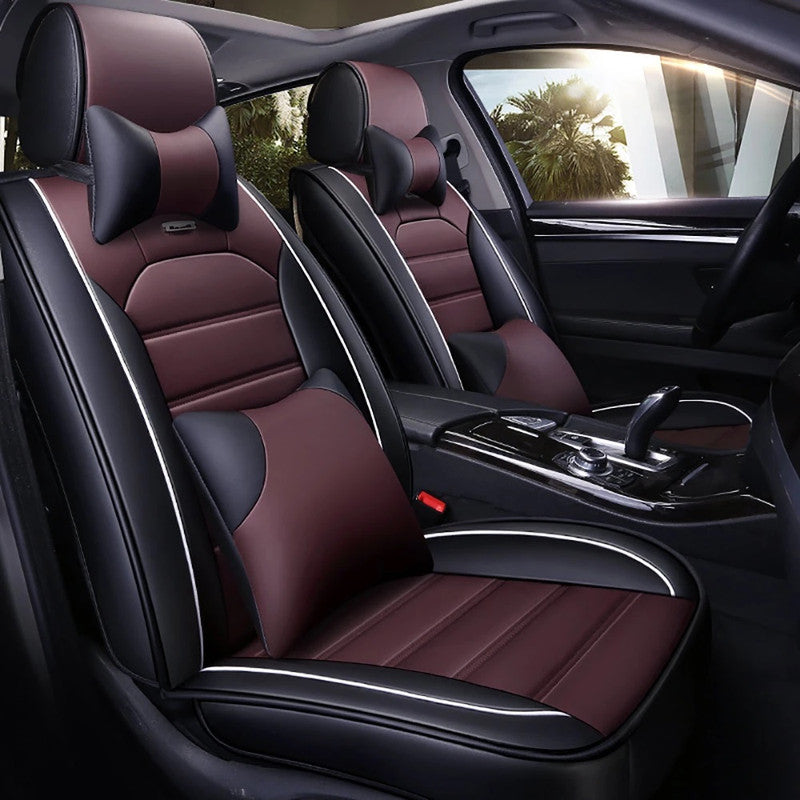 KVD Superior Leather Luxury Car Seat Cover For Kia Syros Black + Coffee Free Pillows And Neckrest Set (With 5 Year Onsite Warranty) - D137/158