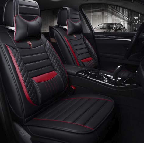 KVD Superior Leather Luxury Car Seat Cover For Kia Syros Black + Red Free Neckrest Set (With 5 Year Onsite Warranty) (SP) - D047/158