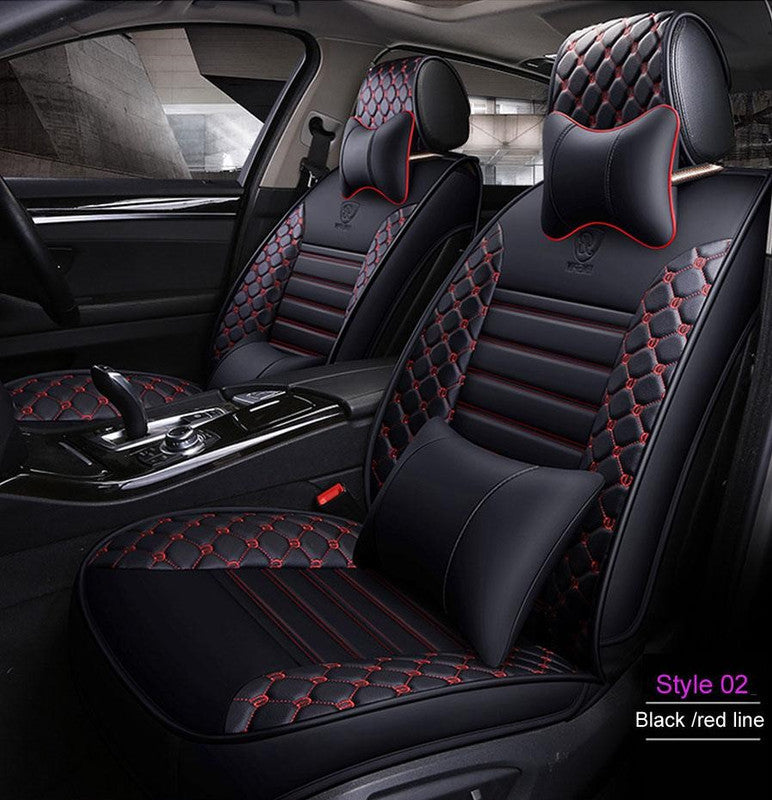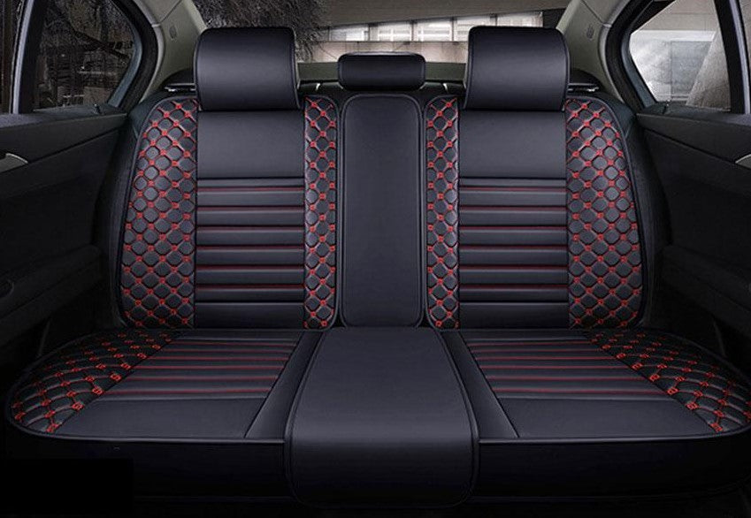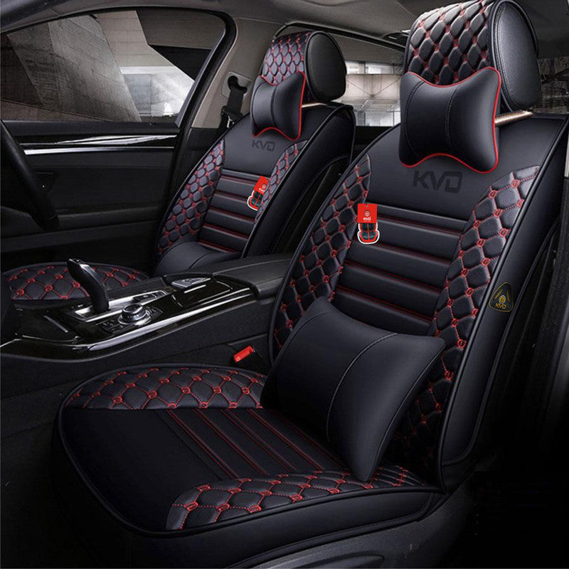 KVD Superior Leather Luxury Car Seat Cover For Kia Syros Black + Red Free Pillows And Neckrest Set (With 5 Year Onsite Warranty) - D057/158
