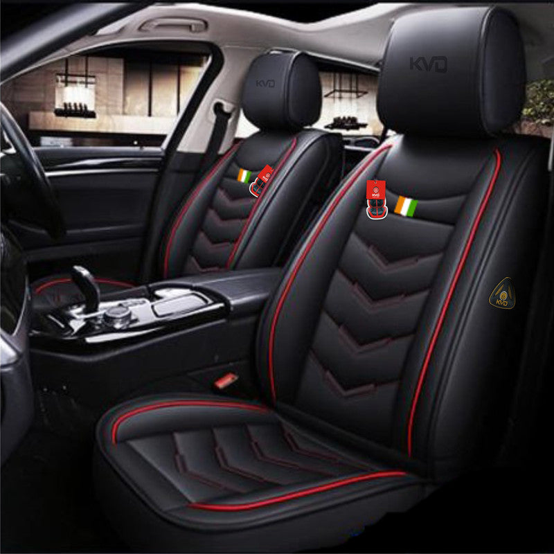 KVD Superior Leather Luxury Car Seat Cover For Kia Syros Black + Red (With 5 Year Onsite Warranty) - DZ075/158