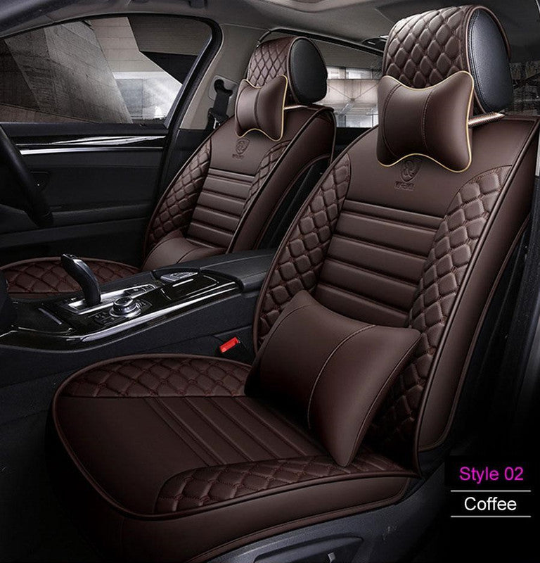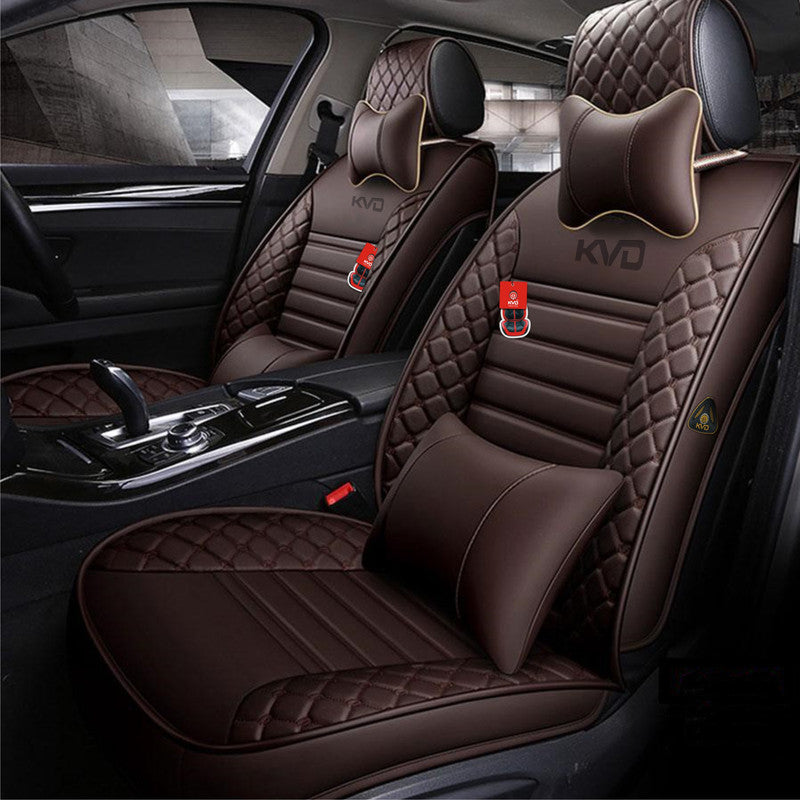KVD Superior Leather Luxury Car Seat Cover For Kia Syros Full Coffee Free Pillows And Neckrest Set (With 5 Year Onsite Warranty) - DZ061/158