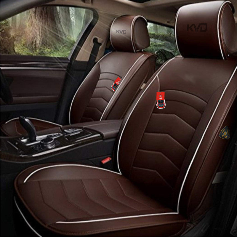 KVD Superior Leather Luxury Car Seat Cover For Maruti Suzuki Victoris Coffee + White (With 5 Year Onsite Warranty) - DZ104/157