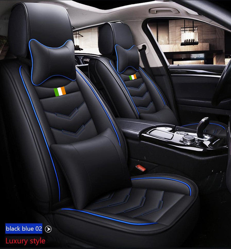 KVD Superior Leather Luxury Car Seat Cover For Tata Curvv Black + Blue Free Pillows And Neckrest Set (With 5 Year Onsite Warranty) - DZ073/77