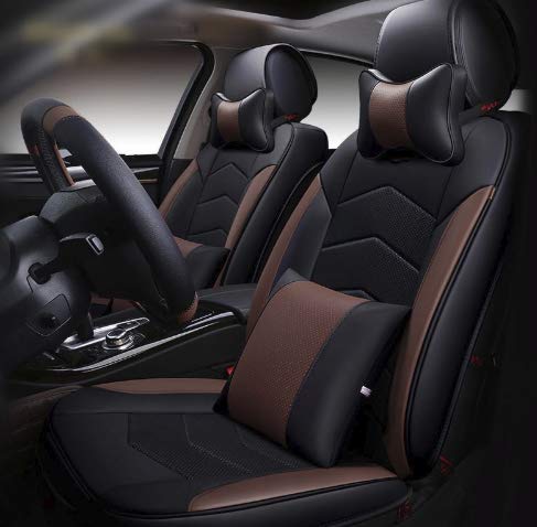 KVD Superior Leather Luxury Car Seat Cover For Tata Curvv Black + Coffee Free Pillows And Neckrest Set (With 5 Year Onsite Warranty) - D125/77