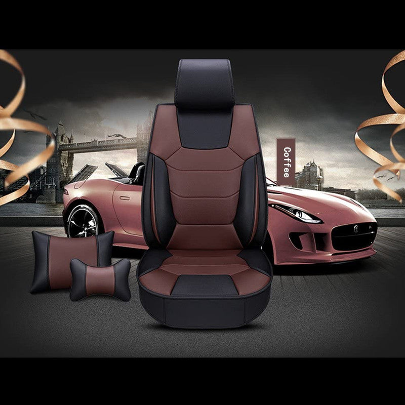 KVD Superior Leather Luxury Car Seat Cover For Tata Curvv Black + Coffee Free Pillows And Neckrest Set (With 5 Year Onsite Warranty) - D138/77