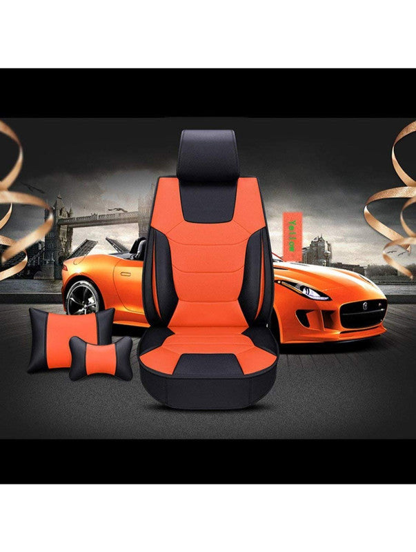 KVD Superior Leather Luxury Car Seat Cover For Tata Curvv Black + Orange Free Pillows And Neckrest Set (With 5 Year Onsite Warranty) - D139/77