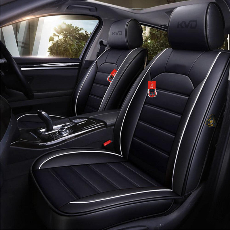 KVD Superior Leather Luxury Car Seat Cover For Tata Curvv Black + Silver (With 5 Year Onsite Warranty) - DZ133/77