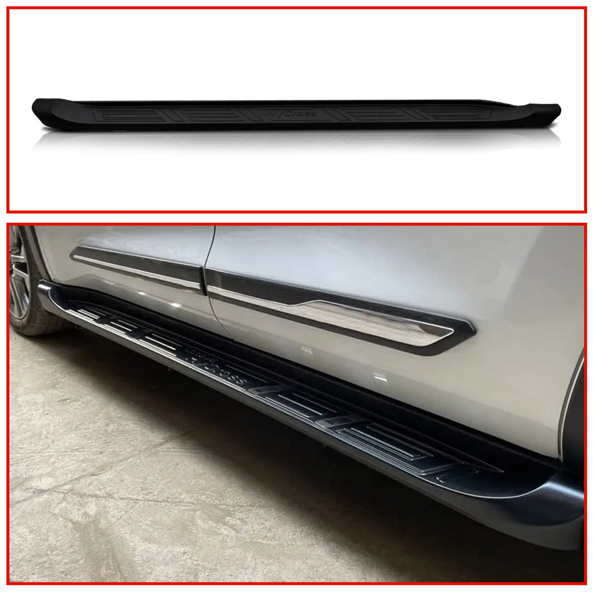 kvd autozone side foot steppers are made up of injection-molded virgin engineering plastic (ABS) and a heavy reinforcement frame underneath which makes them durable and long-lasting.